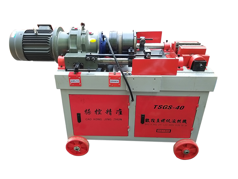 5.滾軋反絲時,按下反轉起動按鈕,轉動進給手柄向工件方向進給實現切削,當剝肋長度達到要求時,剝肋刀自動張開,,滾軋頭反向旋轉,操縱手柄繼續進給,即可滾軋反扣螺紋,當滾絲輪與鋼筋接觸時,一定要用力,并使主軸轉一周,軸向進給一個螺距長度,當進給到一定程度后,即可實現自動進給,直到整個滾軋過程完成后自動停車。自動退刀。